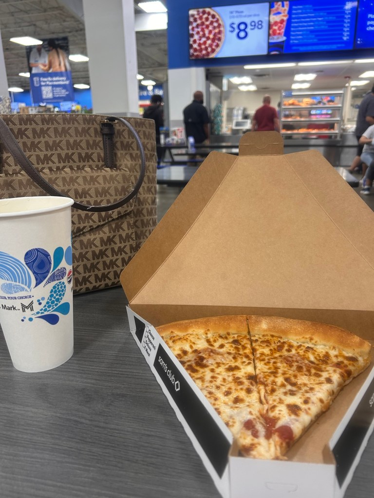 Sam’s Club is the only place near enough to my work to actually get food at lunch. So every Wednesday, I spend my half an hour break at Sam’s Club. Not to shop. To eat. Where else can you get two huge (delicious) slices of pizza and a drink for $2.50?
